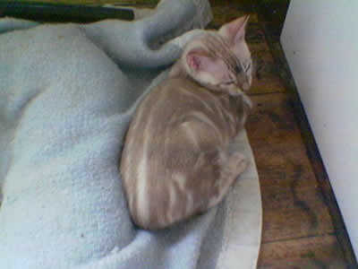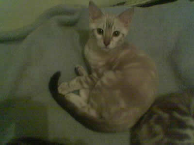 Chilli Khan was born November 2007. Chilli is from our girl Anisa and boy Razam. Chilli looks just like his mom Anisa and is just as sweet and lovable as her. He loves to meet and make friends with everyone. He cuddles like his mom and purrs just as loudly. |