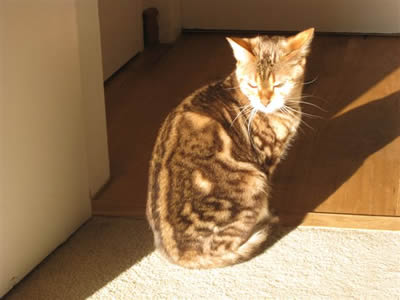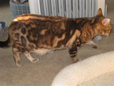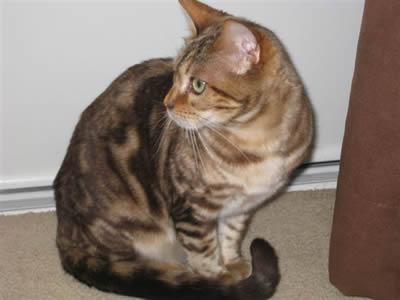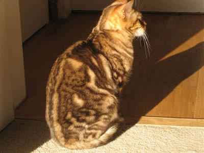 Shinga is a Mink marble Bengal. Shinga is showing off for us nicely here her very distinct marble pattern. |