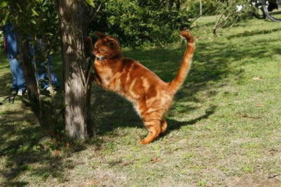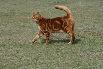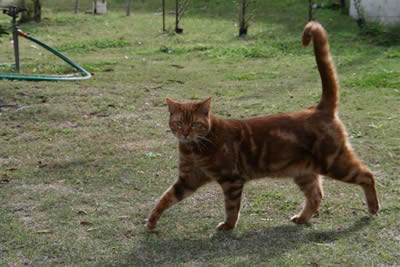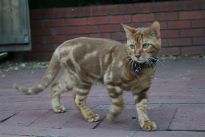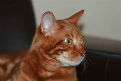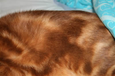 Many thanks to Tigger's new mom Joy for getting us a close up shot of Tigger's pattern at 8 months old. His coat is a beautiful rich shade of cinnamon with lots of glitter. Tigger is still busy trying to get his colour recognised in South Africa. |