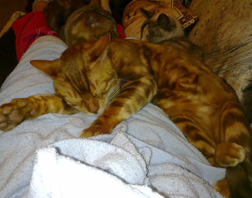 Laver loves nothing more then to cuddle up on a lap. He is real momma's boy. We will be expecting his future kittens to be as naughty and loving as him. |